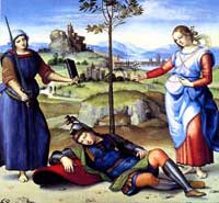 Tempera on wood. National Gallery London.(Note: - This is intended as a general illustration of the Egg Tempera method. It is not suggested that Raphael followed these exact stages when constructing this painting.)