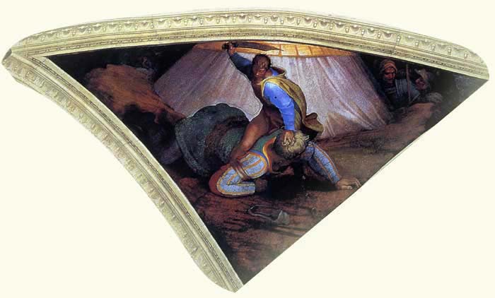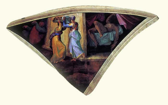 Holofernes, a general in the Babylonian army, had orders to attack the Israeli army but Judith, a young Jewish girl, got Holofernes drunk and managed to kill him.